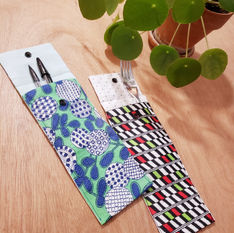 Fabrication d'une petite pochette doublée avec un bouton pression, ou d'un petit sac à cordons pour y mettre savon, cartes, brosse à dents, couverts de picnic, crayons ou autres... Ou création de Chouchous de différentes formes, tissus mixés ou en patchworks.
